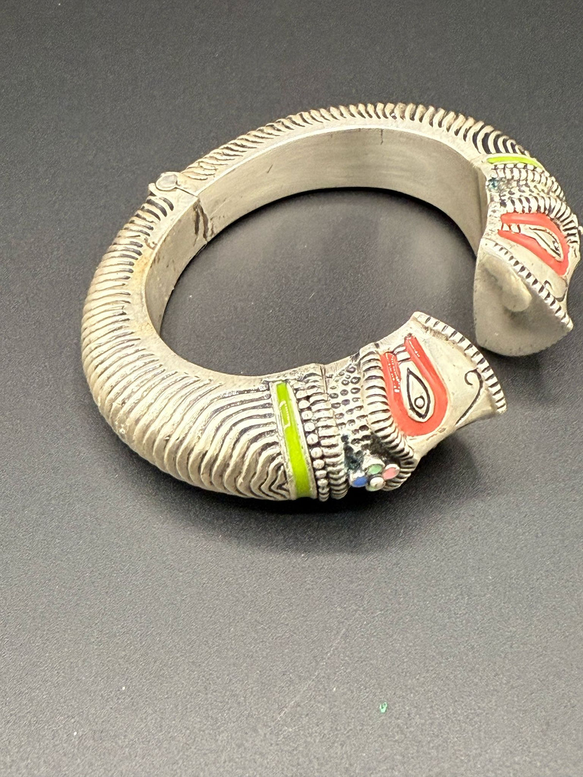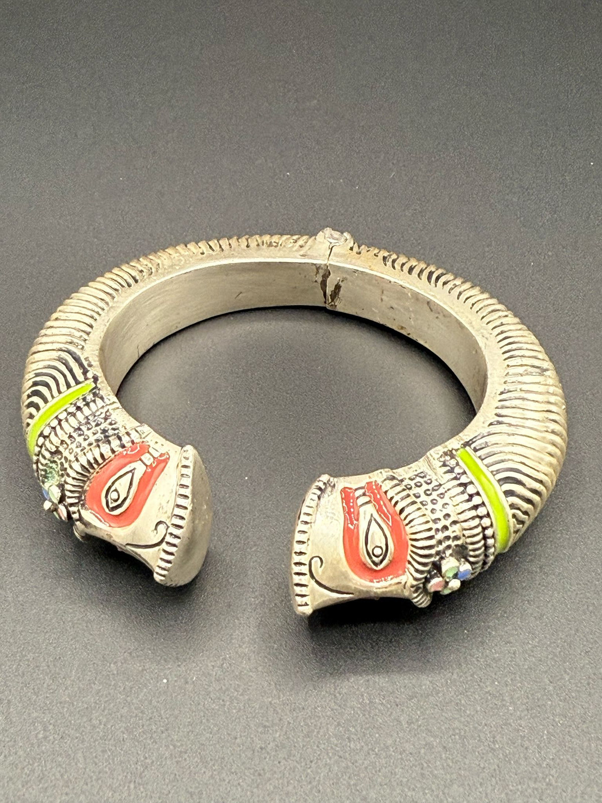 The Makra Bracelet is a royal statement piece, featuring a beautiful composition of vibrant colors and the captivating Makra face design. Crafted with intricate enamel detailing, this bracelet blends traditional artistry with contemporary elegance. Please note: This listing is for a single bracelet, not a pair.