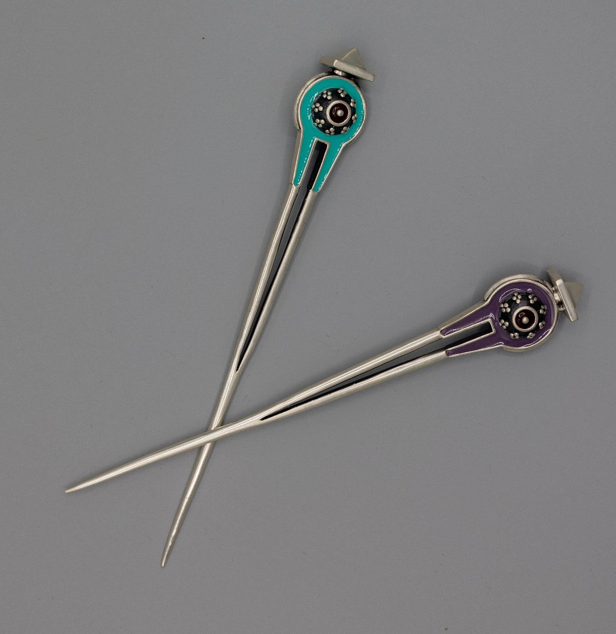 Dark Purple Enamelled Handcrafted Shivling Pyramid Silver-Plated Hair Pin